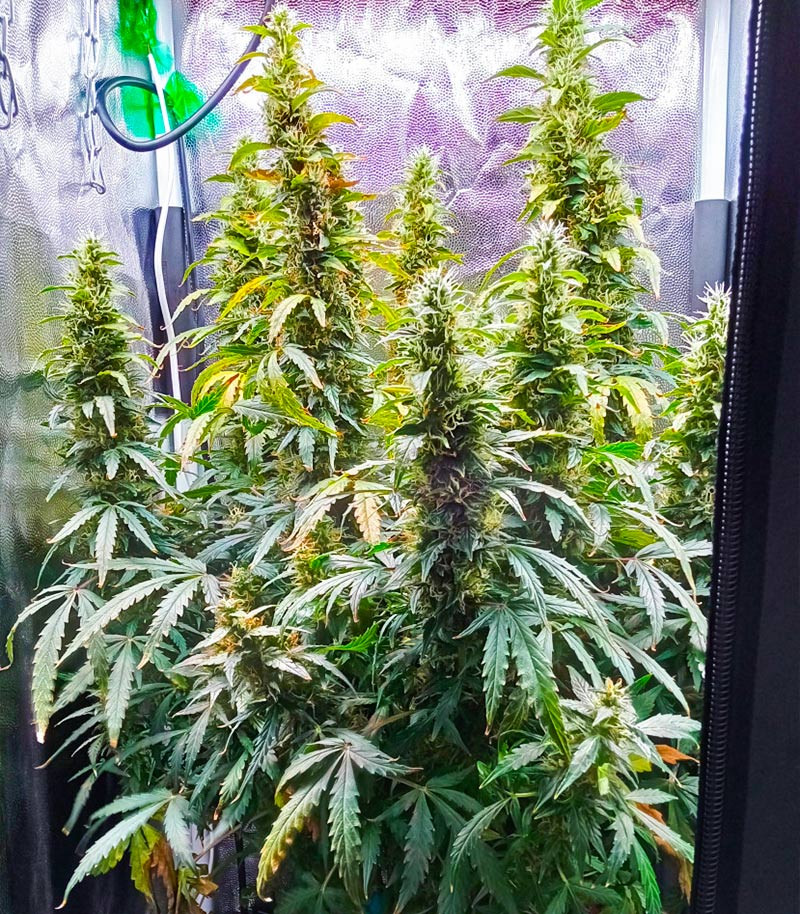 Растение не боится плесени и низких температур. Его иммунитет способен справиться со всеми наиболее распространенными заболеваниями. Кусты вырастают крепкими и ветвистыми. Их рост редко превышает отметку в 1 м. Они хорошо реагируют на техники контроля роста и повышения производительности, без проблем помещаясь даже в небольшом стелс-боксе. Соцветия вырастают плотными и липкими. Они полностью покрываются трихомами, переливаясь на свету яркими красками. Для высадки автоцвета в помещении рекомендуется использовать горшок на 15-20 л, чтобы он смог раскрыть свой генетический потенциал.