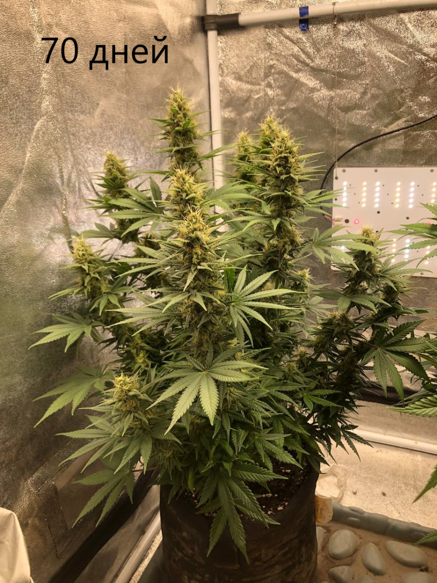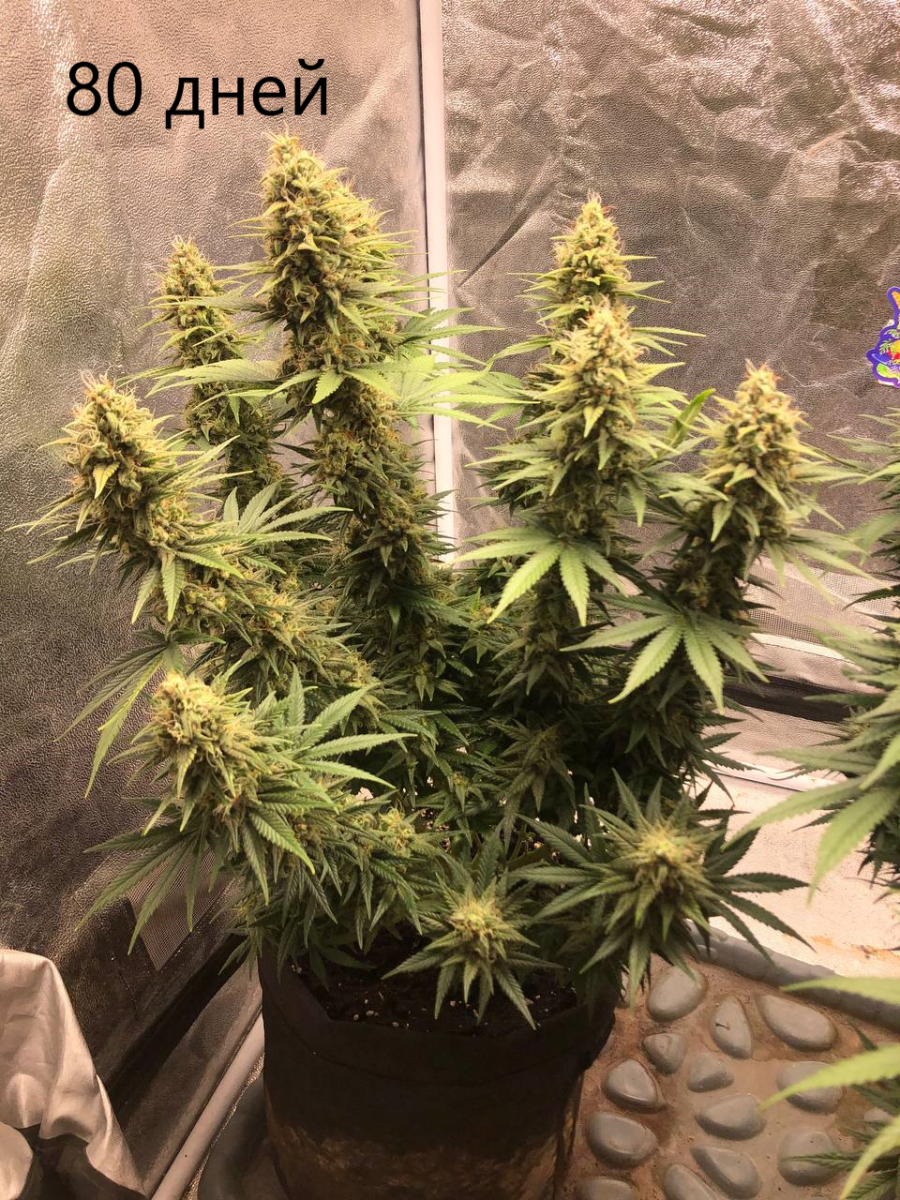 Эти очаровательные фиолетовые растения влюбляют в себя с первого взгляда. После перевода на 12-часовой день они будут готовы к харвесту через 49-56 дней. Урожайность достигает 500-700 г/м² в помещении и 800 граммов с каждого куста в аутдоре. 27% ТГК дарят расслабление и умиротворение.