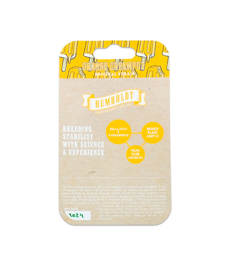 Humboldt Seed Company – это американский сидбанк с мировым именем и огромным списком титулованных сортов. Каннабис Orange Creampop быстро стал одним из самых известных растений в их ассортименте. Он моментально влюбил в себя публику феноменальным ароматом, который, по версии Leafly, точь-в-точь передает его название. Этот гурманский сорт производит колоссальное количество сочных терпенов, заставляющих шишки пахнуть, как сладкое апельсиновое мороженое в лучах палящего летнего солнца.